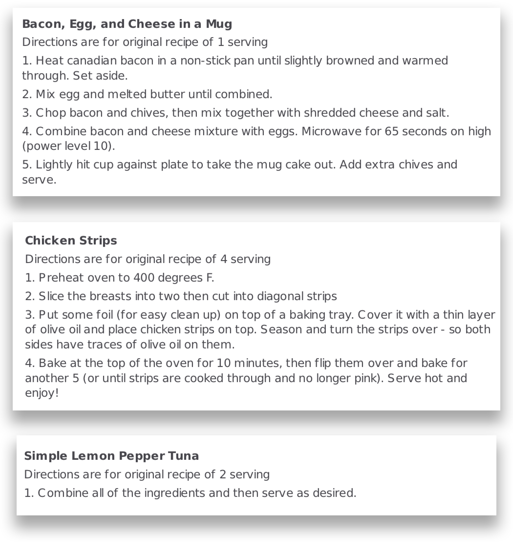 With our custom Keto meal plans, you know you can trust the recipes. Because they’re curated by our team of Keto experts. And even better, our plans are customized for you. They only use foods you like, based on the a quick questionnaire that lets us understand your tastes. That way, you will love every bite as you watch the pounds fall off. And we automatically adjust the recipes in your meal plan to match your Keto profile, too. So you don’t need to do any annoying math to get the portions right, like you would for meals you find on generic Keto sites.