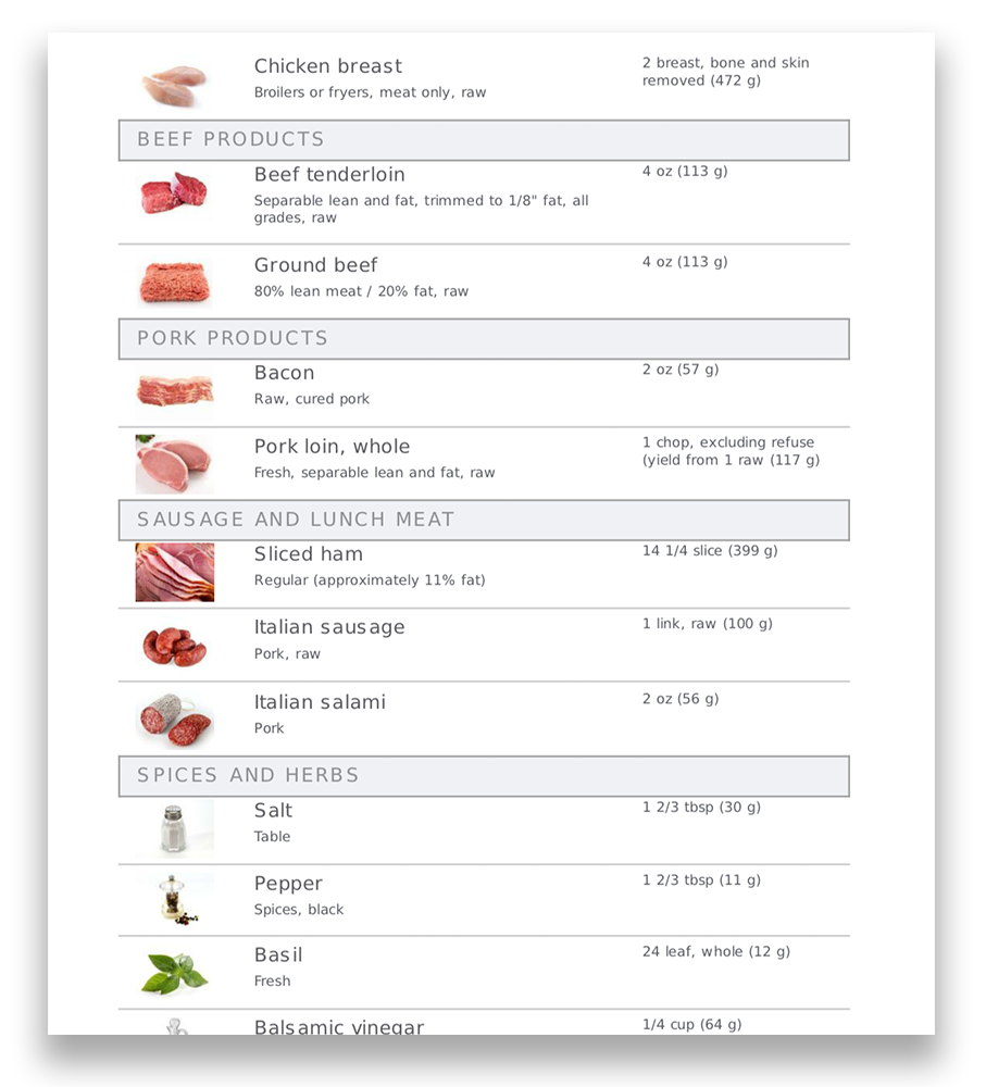 We make sure our recipes only use ingredients you can find in a “normal” grocery store. Things like chicken breast, spinach, and olive oil. You won’t need any “crazy” speciality foods. You should be able to get 99% of the ingredients at stores like Kroger, Publix, ShopRite, Target, and Wal-Mart. And many of the non-perishable items are also available on Amazon. So you shouldn’t see a big spike in your grocery bill, either.